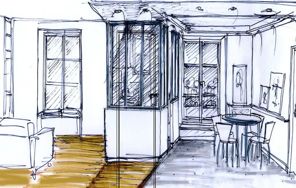 Après lui avoir fourni des esquisses et une estimation du coût des travaux, Mr JPH se lance dans l’acquisition et nous confie la conception et la réalisation du projet de rénovation.