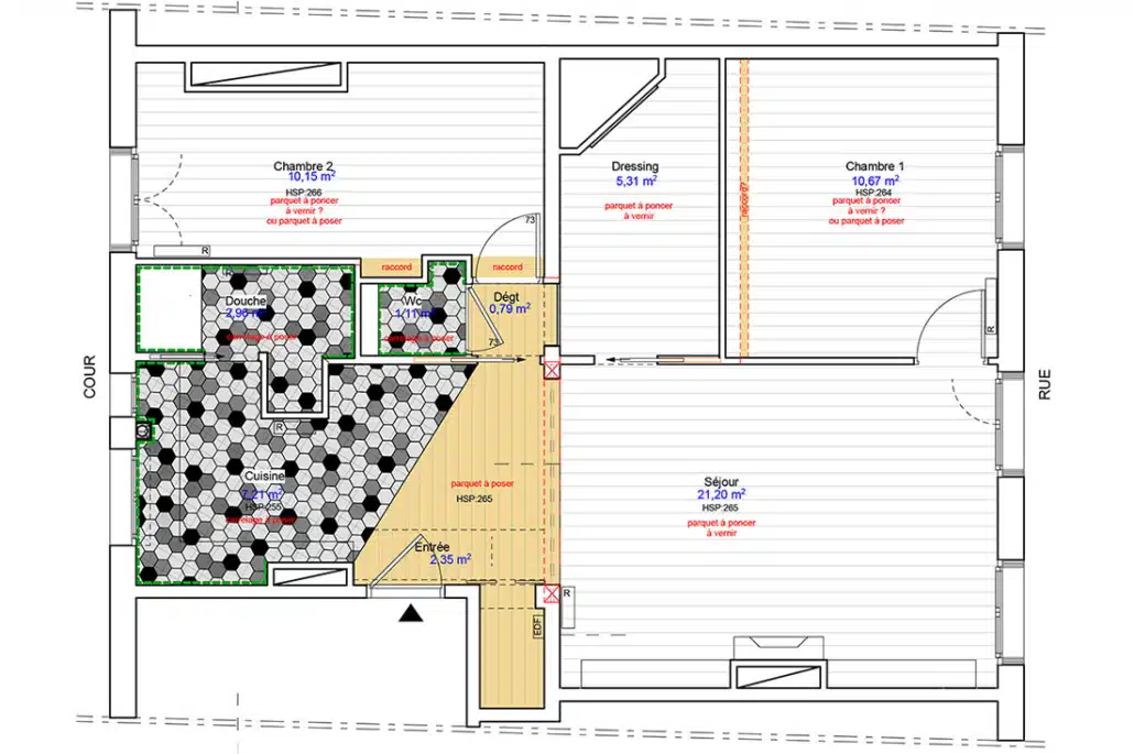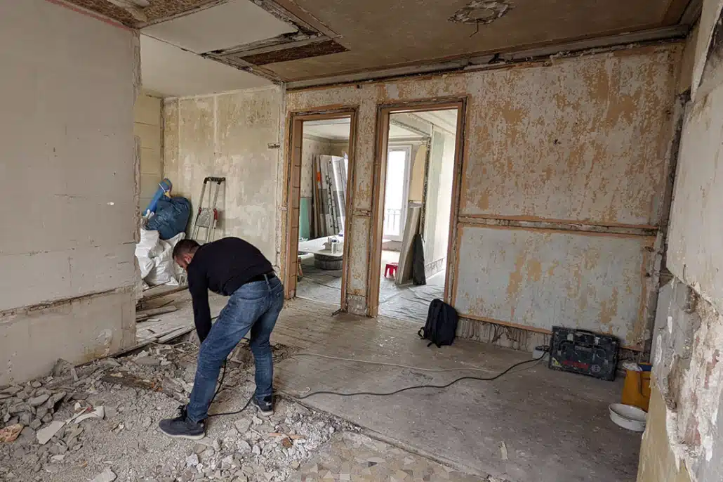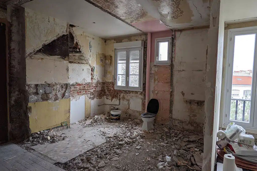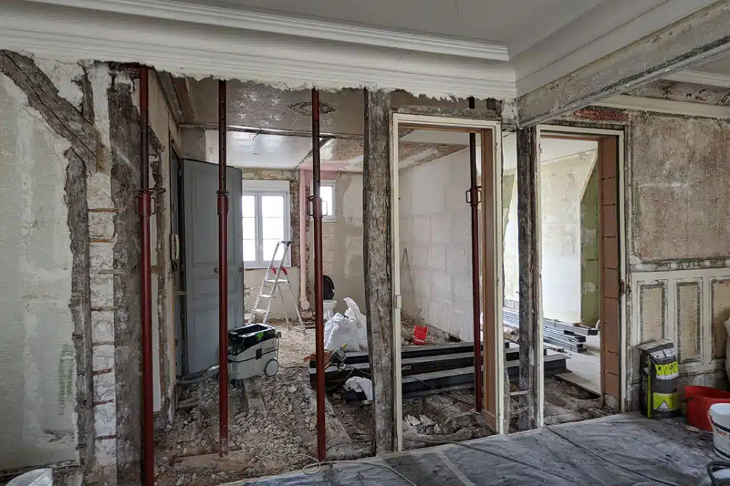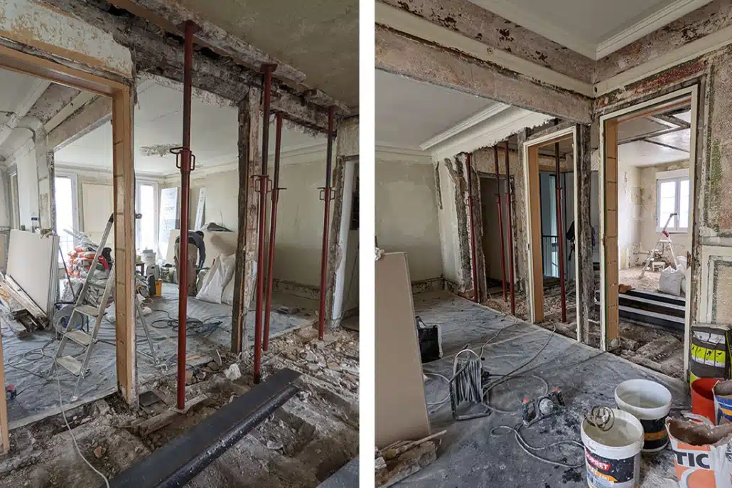 - suppression de l’entrée inutile, avec consolidation de ses murs porteurs