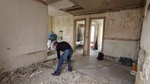 Cloison entre la chambre parentale et le coin cheminée abattue